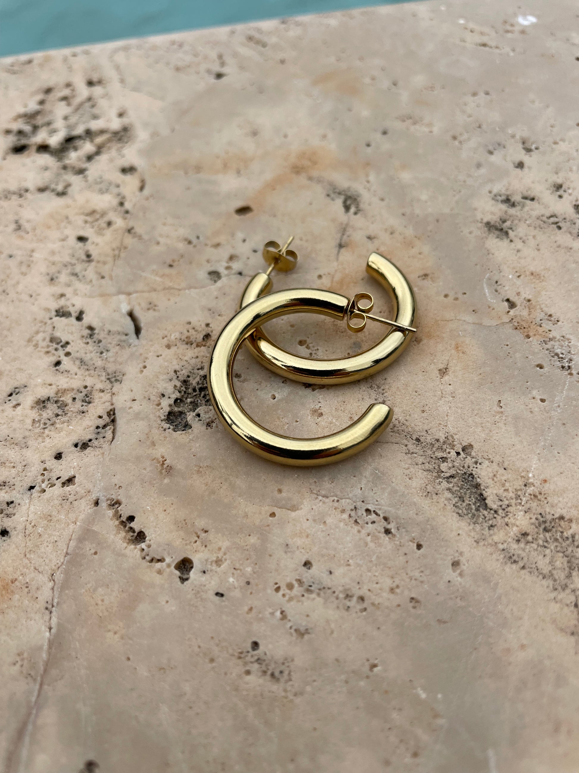 Unsere Greta Hoops sind nicht ohne Grund einer unserer Bestseller. Ihr klassisches und elegantes Design machen sie zu einem zeitlosen Begleiter, den du immer tragen kannst. Wenn du ein zweites Ohrloch hast, kombiniere sie mit der kleinen Schwester Greta Small.